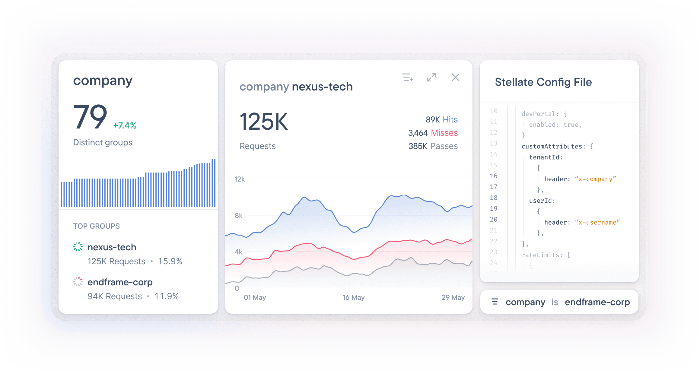 This new feature allows users of Stellate’s GraphQL Metrics to define their own custom data points that will be tracked with every GraphQL request. You can add any header value, cookie value, or JWT claim as a custom attribute. You can then filter any part of your GraphQL Metrics down to a specific user or group of users to see how they interact with your GraphQL API.
