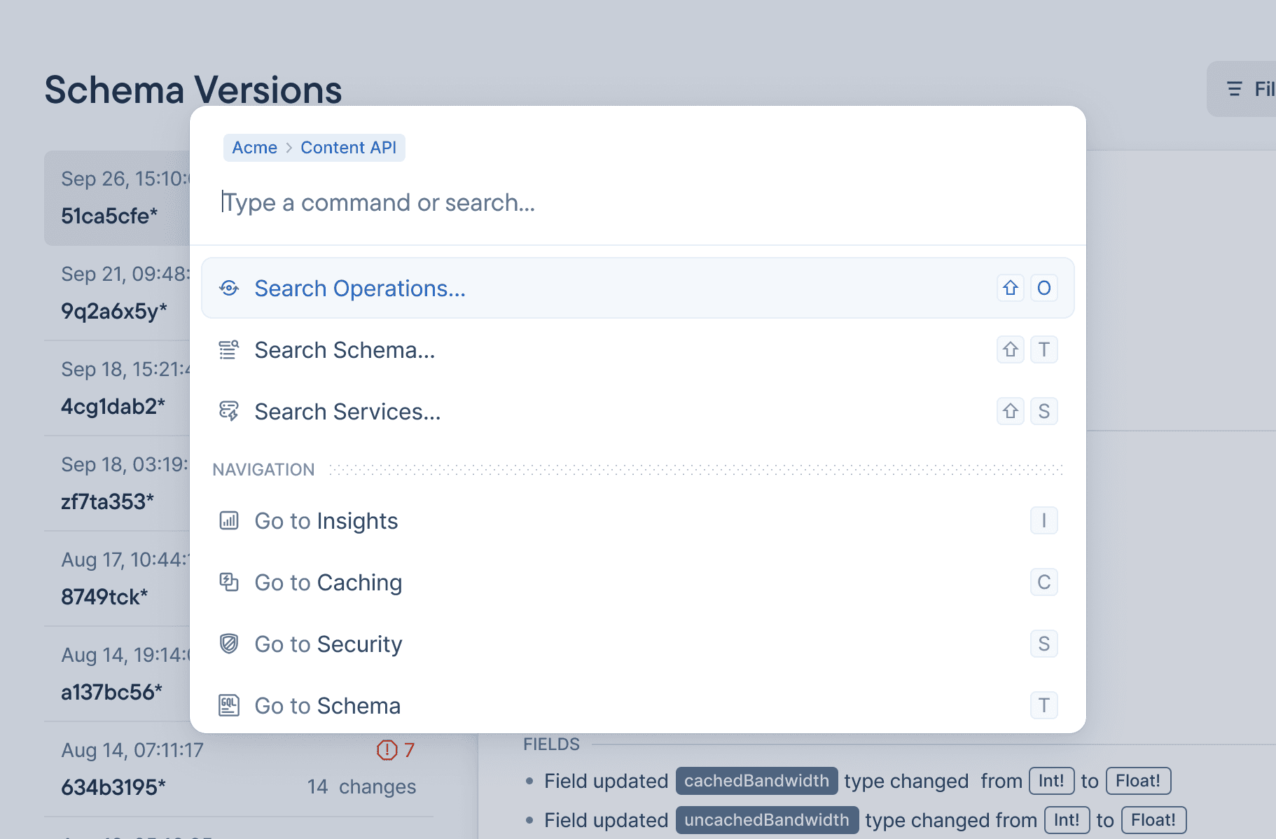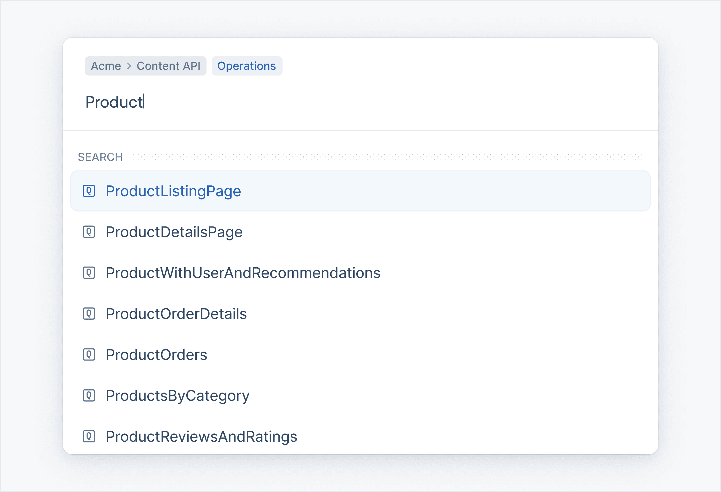 Our quick switch menu also supports searching your entire schema, allowing you to quickly hop to a specific type, field, or operation.