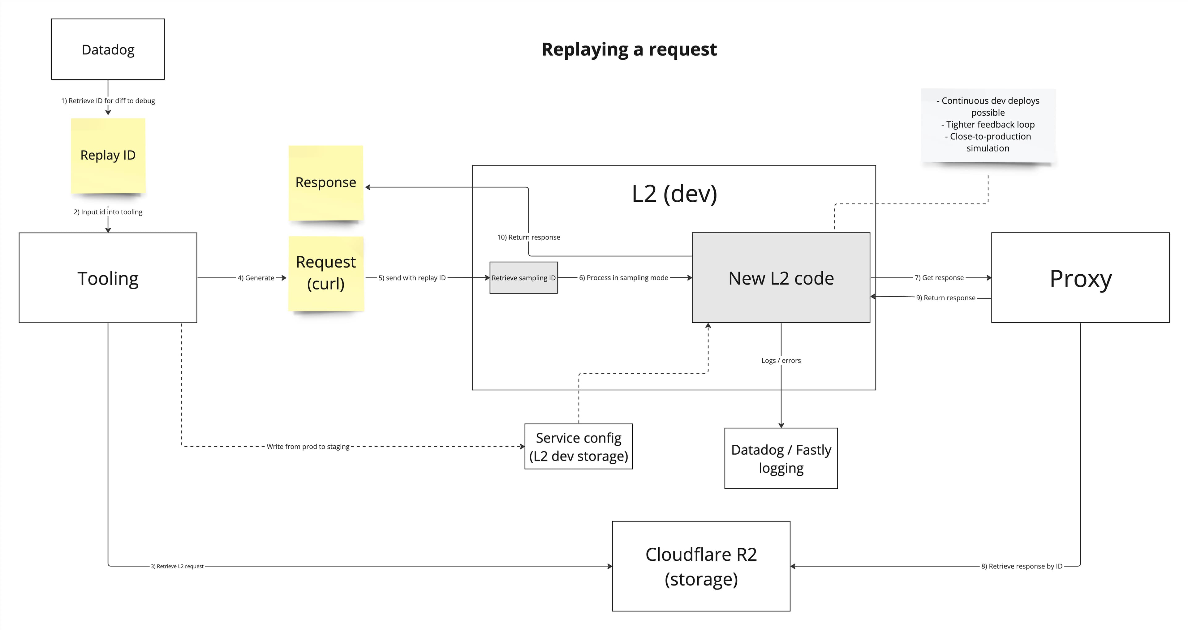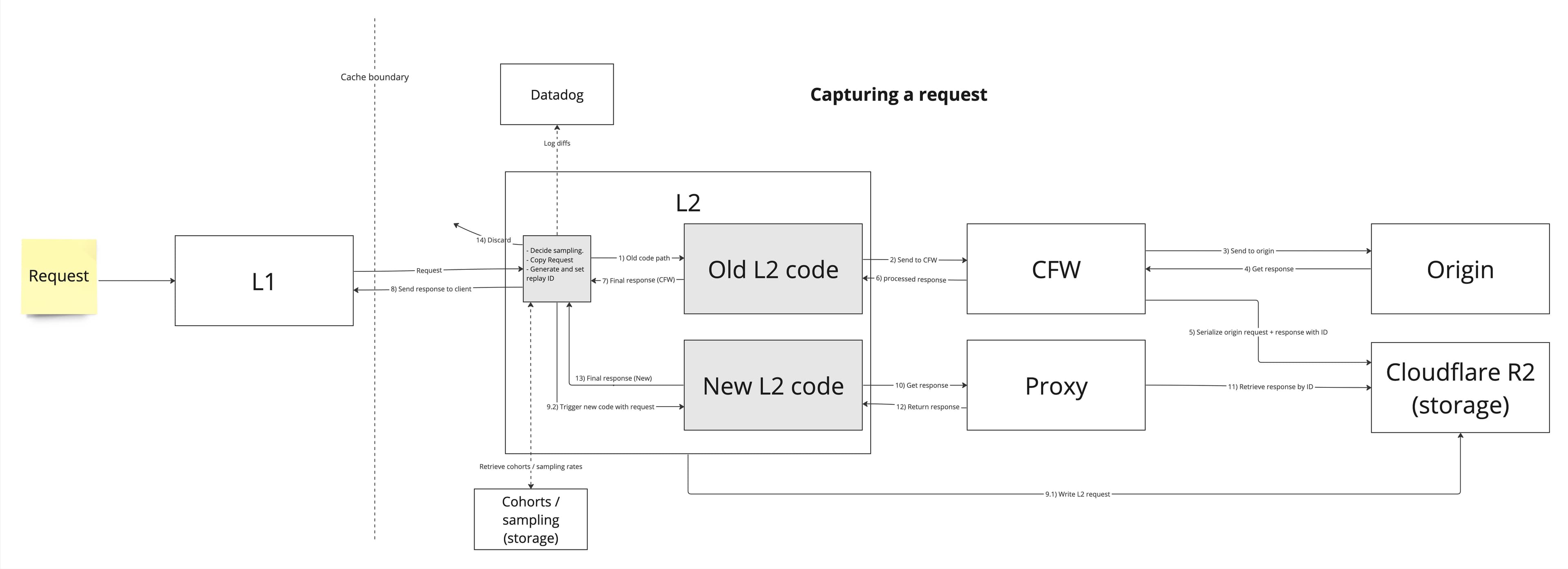 With that in mind we set out and built the system. Here’s an internal flow diagram from the design phase that shows how capturing and replaying fits into the system: